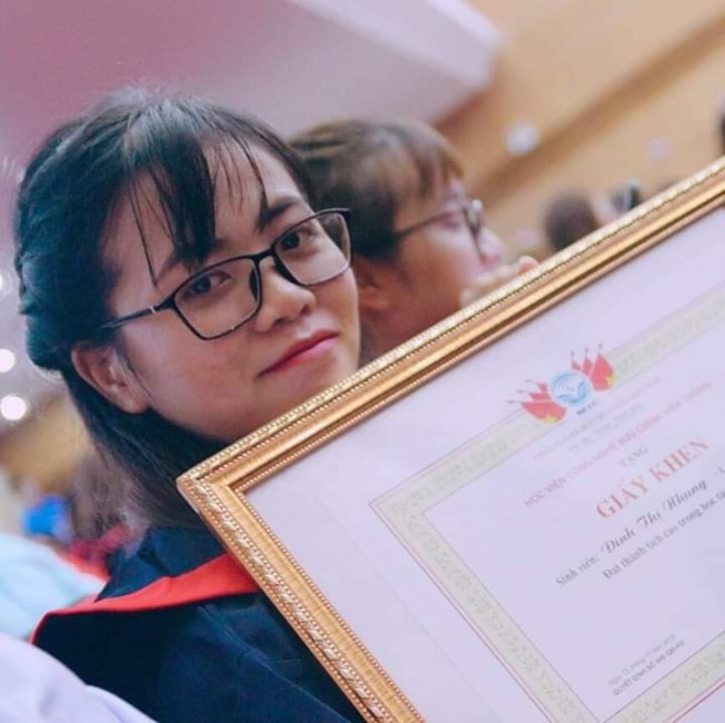 Đại diện cho khối ngành kinh tế của Học viện, sinh viên Đinh Thị Nhung cũng được vinh danh tại buổi Lễ. Đinh Thị Nhung có điểm học tập toàn khóa là 3.5 và đạt học bổng tất cả các kỳ tại Học viện. Ngoài ra, Đinh Thị Nhung còn tích cực tham gia các hoạt động tình nguyện, hoạt động Đoàn trong và goài Học viện như Hiến máu tình “PTIT Hồng”; Chiến dịch “Mùa hè Xanh” “Thắp lửa ngày Đông”…