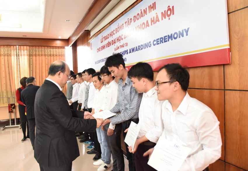 Phát biểu tại Lễ trao học bổng, PGS Huỳnh Quyết Thắng bày tỏ niềm vui mừng vì sau gần ba năm, những điều khoản trong văn bản hợp tác giữa Trường ĐHBK Hà Nội và Tập đoàn IHI đã hiện thực hóa thông qua hoạt động trao học bổng này. Đồng thời, Phó Hiệu trưởng hy vọng, học bổng của Tập đoàn IHI sẽ là động lực lớn giúp mỗi sinh viên phấn đấu hơn để đạt kết quả cao trong học tập.
