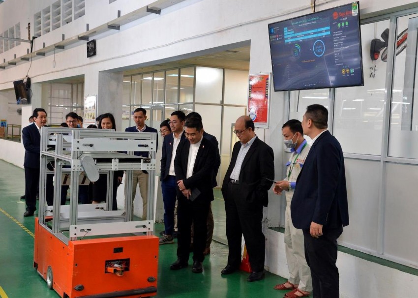 Đoàn giảng viên và cán bộ của Bách khoa Hà Nội thăm quan nhà máy sản xuất tại Công ty cổ phần Rạng Đông. Ảnh: Việt Hòa.