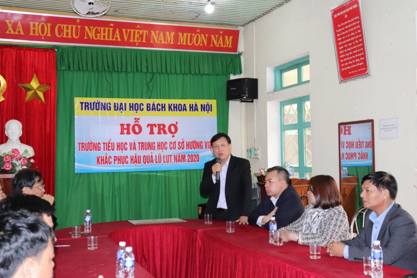 Ngay sau khi nắm bắt tình hình và tìm hiểu nhu cầu thực tế của Trường Tiểu học và THCS Hướng Việt. huyện Hướng Hóa, Tổ công tác của Công đoàn Trường Đại học Bách khoa Hà Nội do TS. Bùi Đức Hùng, Phó Bí thư Đảng ủy – Chủ tịch Công đoàn Trường đã cùng với Lãnh đạo Công đoàn giáo dục Việt Nam – Đồng chí Vũ Minh Đức, Chủ tịch Công đoàn Giáo dục Việt Nam đại diện trao tặng trang thiết bị hỗ trợ dạy học cho trường TH & THCS Hướng Việt, huyện Hướng Hóa, tỉnh Quảng Trị để thầy trò nơi đây có những điều kiện cơ bản, khắc phục được những thiệt hại nặng nề do cơn lũ gây ra, góp phần hoàn thành tốt nhiệm vụ năm học 2020-2021. Cũng trong buổi làm việc đồng chí Chủ tịch Công đoàn giáo dục Việt Nam đã hứa trao tặng 500 triệu đồng xây dựng nhà công vụ cho thầy cô giáo Trường Hướng Việt.