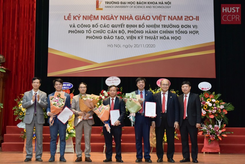 Cũng trong sáng nay, Trường Đại học Bách khoa Hà Nội trang trọng công bố và trao các quyết định bổ nhiệm Trưởng các đơn vị tiếp tục nhiệm kỳ 2018- 2023. Theo đó, GS. Vũ Văn Yêm được bổ nhiệm vị trí Trưởng Phòng Tổ chức cán bộ, PGS. Lê Minh Hoàng - Trưởng Phòng Hành chính Tổng hợp, PGS. Nguyễn Đắc Trung - Trưởng phòng Đào tạo và PGS. La Thế Vinh - Viện trưởng Viện Kỹ thuật Hoá học.