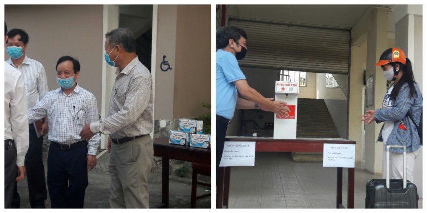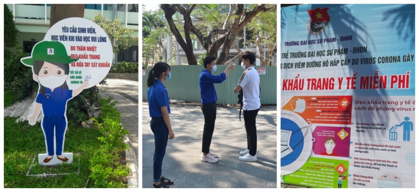 Tại Trường ĐH Sư phạm-ĐHĐN, Giám đốc ĐHĐN đã cùng lãnh đạo Nhà trường trực tiếp đến thăm các lớp học, ký túc xá; Kiểm tra công tác phòng, chống Covid-19, đảm bảo an toàn trường học cho sinh viên. Theo PGS.TS. Lưu Trang, Hiệu trưởng Nhà trường, các điều kiện cần thiết để đảm bảo vệ sinh, an toàn trường học đã được thực hiện đồng bộ, chu đáo như: Bố trí đủ các máy rửa tay tự động (do chính cán bộ, giảng viên Nhà trường nghiên cứu, sáng chế và đã chuyển giao cho nhiều địa phương, cơ quan, trường học, các chợ tại Đà Nẵng, Quảng Nam và Quảng Ngãi) tại các giảng đường, lối lên cầu thang, hành lang và khuôn viên; Bố trí các điểm sinh viên tình nguyện phát khẩu trang miễn phí và nhắc nhở thực hiện đeo khẩu trang trong suốt thời gian học tập, sinh hoạt tại trường. Sinh viên ra, vào ký túc xá đều được nhắc nhở tự giác rửa tay sát khuẩn, đeo khẩu trang và vệ sinh phòng ở, đồ đạc…