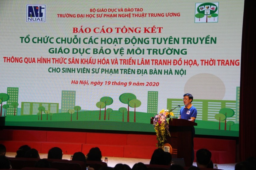 Tại buổi lễ, PGS.TS. Đào Đăng Phượng - Bí thư Đảng ủy, Hiệu trưởng Nhà trường đã báo cáo tóm tắt về hoạt động bảo vệ môi trường năm 2020. Trường ĐHSP Nghệ thuật TW - môi trường sư phạm uy tín của Việt Nam về giáo dục nghệ thuật - luôn coi việc giữ gìn môi trường sống trong lành, cảnh quan xanh, sạch, đẹp là nhiệm vụ quan trọng hàng đầu. Nhà trường tổ chức các chuỗi hoạt động giáo dục bảo vệ môi trường thông qua hình thức nghệ thuật sân khấu hóa Thiết kế Đồ họa, Thiết kế Thời trang… Với hàng chục ca khúc, clip, 60 ảnh, 10 mô hình Thiết kế Đồ họa, 5 bộ sưu tập Thiết kế Thời trang bảo vệ môi trường đã góp phần nâng cao ý thức, nhận thức với môi trường cho sinh viên, cán bộ, giảng viên Nhà trường.