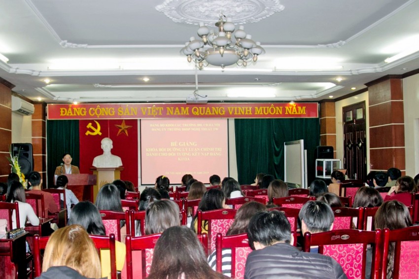 Tại buổi lễ, PGS.TS. Đào Đăng Phượng - Bí thư Đảng ủy, Hiệu trưởng Nhà trường chúc mừng và khen ngợi các học viên đã hoàn thành khóa học do Đảng ủy Trường ĐHSP Nghệ thuật TW tổ chức. Đồng chí cũng chia sẻ mong muốn rằng, các học viên sau khi hoàn thành khóa học sẽ tiếp tục phát huy thái độ gương mẫu, không ngừng trau dồi trình độ chuyên môn và bản lĩnh chính trị để sớm trở thành Đảng viên Đảng Cộng sản Việt Nam.