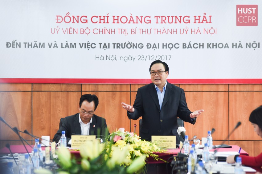 Đánh giá cao nỗ lực và đóng góp của Trường ĐHBK Hà Nội, Bí thư Thành ủy Hà Nội Hoàng Trung Hải nhấn mạnh: ĐHBK Hà Nội là trường đại học có danh tiếng trong cả nước. Chất lượng sinh viên khi ra trường và các sản phẩm, công trình nghiên cứu khoa học của đội ngũ cán bộ là minh chứng rõ nét nhất cho thương hiệu của Trường. Đồng chí bày tỏ sự vui mừng và tự hào là cựu sinh viên Bách khoa - ngôi trường khoa học kỹ thuật hàng đầu của cả nước. Với bề dày 61 năm xây dựng và trưởng thành, ĐHBK Hà Nội đã làm rạng rỡ thêm lịch sử của Thủ đô ngàn năm văn hiến. "ĐHBK Hà Nội là của Hà Nội, có nhiều đóng góp cho Thủ đô. Thành phố có trách nhiệm với trường và cũng chưa sử dụng hết lợi thế của trường" - Bí thư Thành ủy nhấn mạnh.