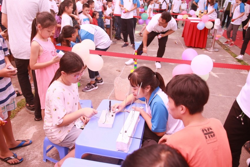 Vừa được chơi lại vừa có những món quà bất ngờ mang về, gian Trò chơi có thưởng đã thu hút được rất nhiều các em nhỏ ghé thăm và tham gia góc khoa học vui