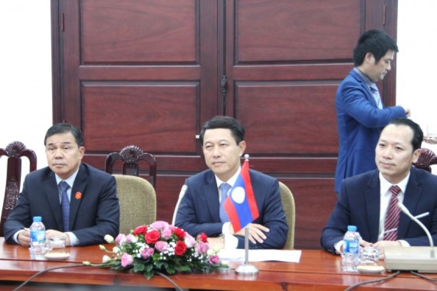 Bộ trưởng Ngoại giao Lào lắng nghe những chia sẻ của Giám đốc Học viện Ngoại giao Việt Nam. (ảnh: HVNG)