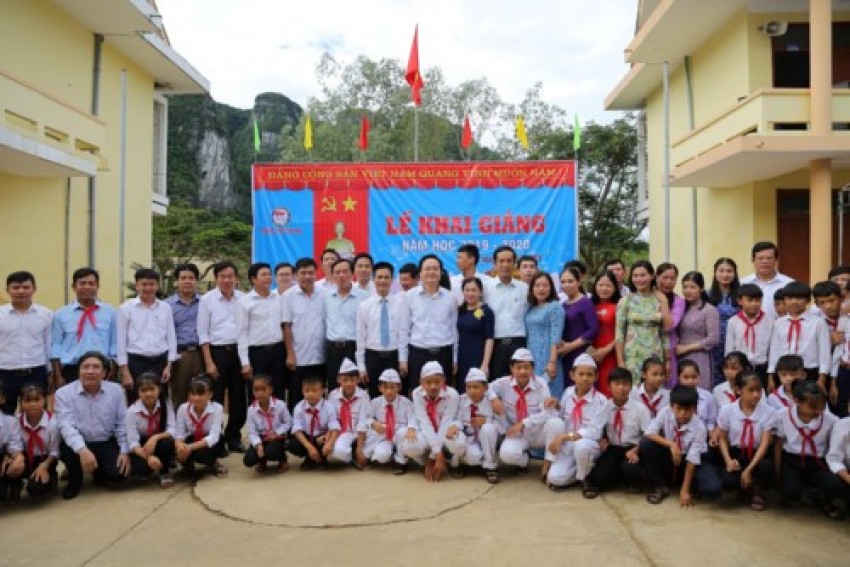 - Hôm nay 11/9 học sinh các trường nằm trong vùng lũ của tỉnh Quảng Bình đã tổ chức khai giảng năm học 2019-2020. Trong lễ Khai giảng muộn, Bộ trưởng Bộ Giáo dục và Đào tạo Phùng Xuân Nhạ cùng lãnh đạo tỉnh Quảng Bình đã tới dự và động viên tinh thần vượt khó của thầy và trò các trường mầm non, Tiểu học, THCS trên địa bàn xã Tân Hoá. Lễ Khai giảng diễn ra muộn do thầy và trò phải dọn dẹp trường học sau trận lũ lớn.