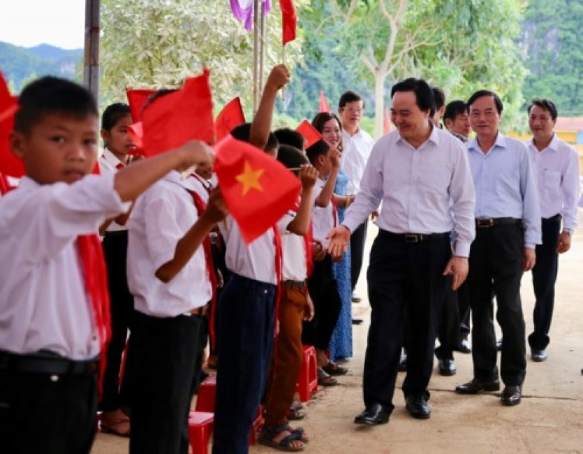 | Trong buổi Lễ Khai giảng muộn, Bộ trưởng Bộ Giáo dục và Đào tạo Phùng Xuân Nhạ cùng lãnh đạo tỉnh Quảng Bình đã tới dự và động viên tinh thần vượt khó của thầy và trò các trường mầm non, Tiểu học, THCS trên địa bàn xã Tân Hoá. |
