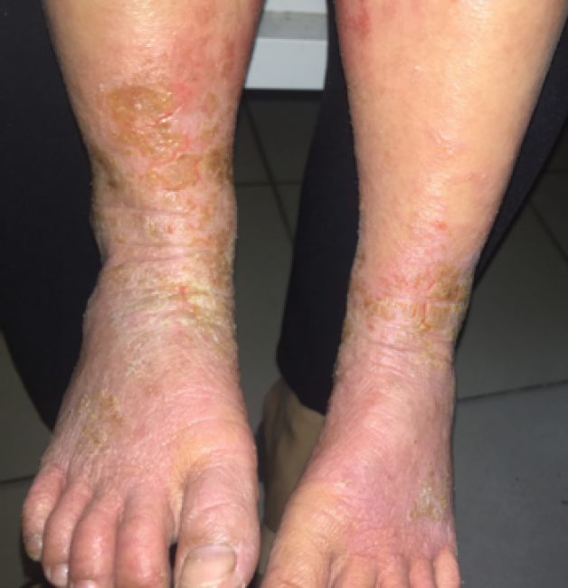 Viêm da cơ địa vùng chân ở trẻ lớn.