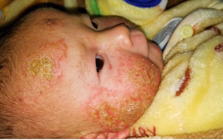 - Giai đoạn cấp tính: Da trẻ xuất hiện mụn nước, sau giai đoạn này tổn thương tiết dịch hoặc bội nhiễm. Những tổn thương nông thì thường không để lại sẹo tổn còn với tổn thương sâu sẽ khó chăm sóc và phục hồi lâu. Vị trí hay gặp ở má, cằm, chán và có thể lan ra khắp cơ thể.
