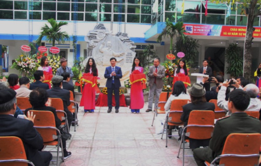 Nhân dịp này, Trường đại học Sư phạm Nghệ thuật Trung ương đã tổ chức cắt băng khánh thành bức phù điều nghệ thuật "Bác bắt nhịp bài ca kết đoàn".