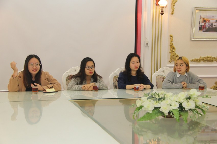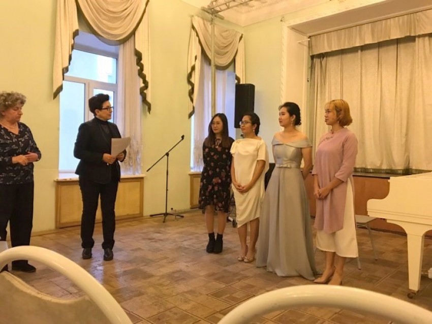 Đến dự buổi gặp thân mật có PGS.TS. Đào Đăng Phượng - Bí thư Đảng ủy, Hiệu trưởng, TS. Đỗ Việt Hùng - Phó trưởng phòng Khoa học Công nghệ và Hợp tác Quốc tế, đặc biệt là 4 học viên, sinh viên Nguyễn Nguyệt Ánh Mai (K1 Piano), Nguyễn Thị Minh Phương (K2 Piano), Vũ Thu Trang (K2 Piano) và Phạm Phương Hiền (K9 Cao học Lý luận và Phương pháp dạy học Âm nhạc) vừa hoàn thành chương trình học tập tại Liên bang Nga.
