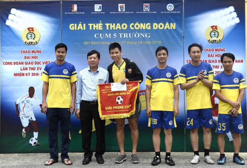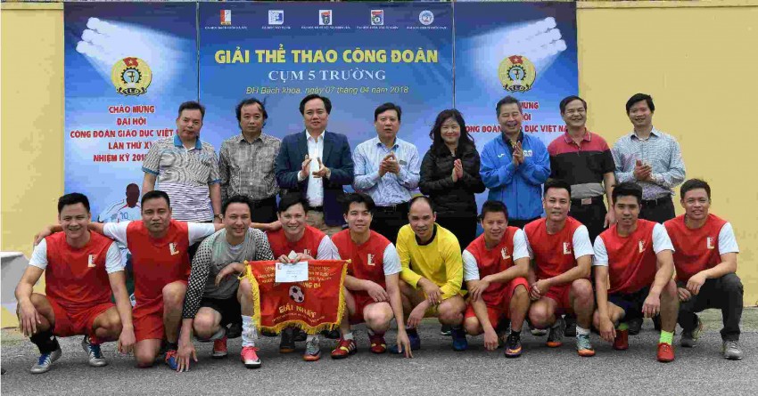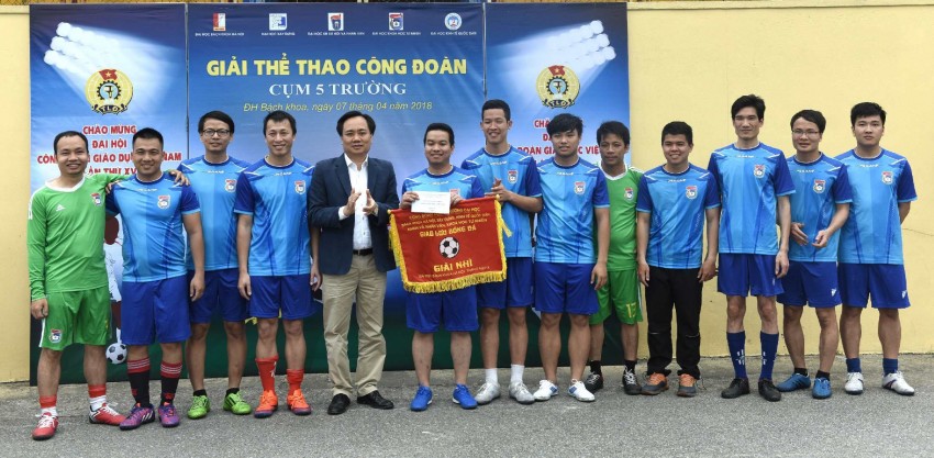Phát biểu khai mạc Giải, TS Bùi Đức Hùng – Chủ tịch Công đoàn Trường ĐHBK Hà Nội cảm ơn sự ủng hộ tham gia của các đơn vị trong cụm 5 trường đại học, đồng thời gửi lời chúc mừng tới tập thể công đoàn các đơn vị, các vận động viên đã dành hết tâm huyết cống hiến cho một giải bóng đá giao hữu trên tinh thần fairplay, tất cả các vận động viên đến tham gia giải đều là những người chiến thắng.