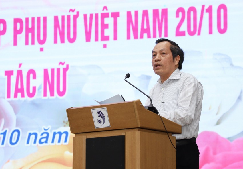 Thay mặt lãnh đạo ĐHĐN, PGS.TS. Ngô Văn Dưỡng-Phó Giám đốc ĐHĐN đã phát biểu gửi những lời chúc mừng tốt đẹp nhất đến toàn thể nữ CBVC, giảng viên, nhân dịp kỷ niệm 90 năm thành lập Hội LHPNVN và Ngày Phụ nữ Việt Nam 20/10; tặng hoa cho đại diện Ban Nữ công Công đoàn ĐHĐN.