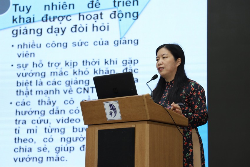 Các tham luận đã đề cập đến nhiều chủ đề thiết thực đối với công tác nữ công trong trường ĐH như: Chế độ, chính sách cho nữ CBVC (TS. Lê Mai Anh-Công đoàn Cơ quan ĐHĐN); Kinh nghiệm giảng dạy, quản lý sinh viên theo phương pháp trực tuyến (TS. Nguyễn Thị Bích Thu-Công đoàn Trường ĐH Kinh tế-ĐHĐN); Vấn đề bình đẳng giới trong xã hội và công tác nữ công (TS. Nguyễn Thị Trâm Anh-Công đoàn Trường ĐH Sư phạm-ĐHĐN)…