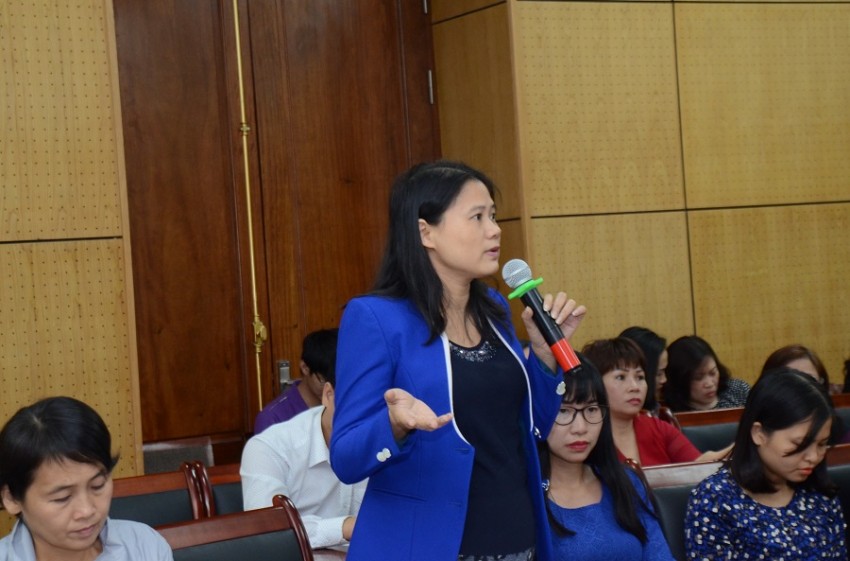 Các cán bộ phụ trách công đoàn thảo luận tại Hội nghị