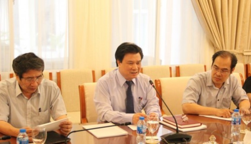Thứ trưởng Nguyễn Hữu Độ (ở giữa) phát biểu tại buổi làm việc