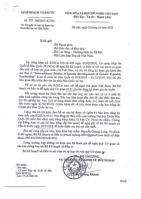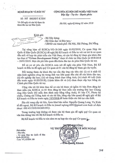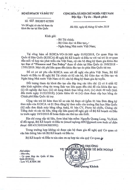 Văn bản kèm theo của Bộ Kế hoạch và Đầu tư
