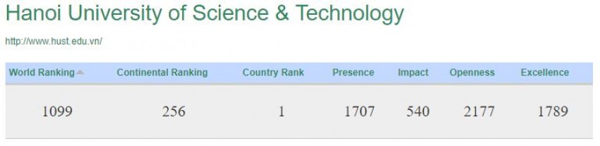Theo bảng xếp hạng Webometrics, ĐHBK Hà Nội đứng thứ 1.099 thế giới. Như vậy, trong 6 tháng, Trường đã tăng 665 bậc so với đợt xếp hạng tháng 1/2017 (1.764).