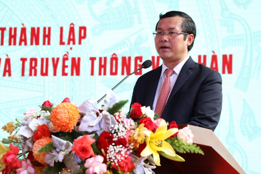 Thứ trưởng Bộ GD&ĐT nhấn mạnh ý nghĩa to lớn của sự hình thành học hiệu mới VKU không chỉ góp phần hoàn thiện mạng lưới cấu trúc các đơn vị thành viên của ĐHĐN mà còn đóng góp tích cực thực hiện Nghị quyết số 43 của Bộ Chính trị xây dựng, phát triển Đà Nẵng trong thời kỳ mới, cung cấp nguồn nhân lực chất lượng cao cho các ngành công nghệ mũi nhọn của đất nước. Nhân dịp này, Thứ trưởng Bộ GD&ĐT gửi lời cám ơn đến lãnh đạo Thành ủy Đà Nẵng, Bộ TT&TT cùng các địa phương đã chỉ đạo, phối hợp trong quá trình xây dựng và phát triển Nhà trường, đặc biệt là sự ủng hộ, hỗ trợ của Chính phủ Hàn Quốc đã viện trợ, đầu tư cho Trường CĐ CNTT hữu nghị Việt-Hàn trước đây và bày tỏ mong muốn VKU và ĐHĐN sẽ tiếp tục nhận được sự hỗ trợ quý báu trong thời gian đến.