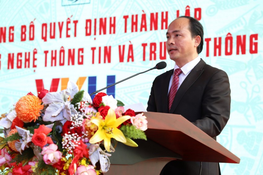 Thứ trưởng Bộ TT&TT TS.Phan Tâm đã phát biểu chúc mừng ĐHĐN và VKU nhân sự kiện có ý nghĩa quan trọng này. Thứ trưởng Bộ TT&TT nhấn mạnh những nỗ lực và đóng góp to lớn của các thế hệ cán bộ lãnh đạo, giảng viên, cựu sinh viên và sinh viên của Trường CĐ CNTT hữu nghị Việt-Hàn cũng như các đơn vị hợp thành khác trong hơn 15 năm qua để hôm nay hiện thực dấu ấn học hiệu mới trở thành trường ĐH CNTT và Truyền thông đầu tiên ở khu vực miền Trung-Tây Nguyên gắn liền với nhịp cầu hợp tác, hữu nghị Việt Nam-Hàn Quốc.