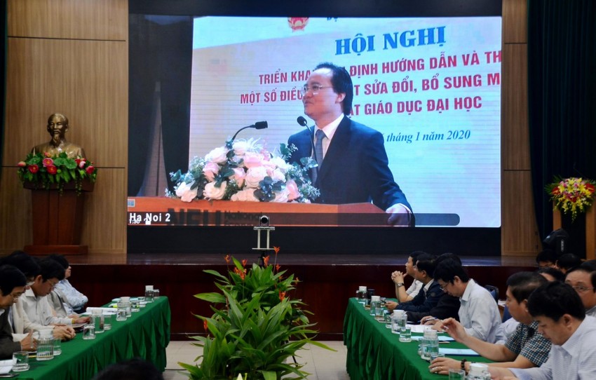 Phát biểu chỉ đạo tại hội nghị, Bộ trưởng Bộ GD&ĐT Phùng Xuân Nhạ khẳng định Luật GDĐH sửa đổi số 34/2018/QH14 được Quốc hội ban hành (ngày 19/11/2018 và có hiệu lực kể từ ngày 01/7/2019) đã tạo cơ sở pháp lý quan trọng thúc đẩy thực hiện tự chủ ĐH, sử dụng hiệu quả các nguồn lực để nâng cao chất lượng giáo dục ĐH. Ngày 30/12/2019, Chính phủ đã ban hành Nghị định số 99/2019/NĐ-CP quy định chi tiết và hướng dẫn thi hành một số điều của Luật GDĐH sửa đổi. Hội nghị lần này sẽ quán triệt, thống nhất nhận thức và hành động để triển khai thực hiện Luật nhằm nâng cao chất lượng Giáo dục ĐH, thực hiện hội nhập quốc tế và đáp ứng tốt hơn nhu cầu đào tạo nguồn nhân lực chất lượng cao góp phần phát triển kinh tế - xã hội cho đất nước.