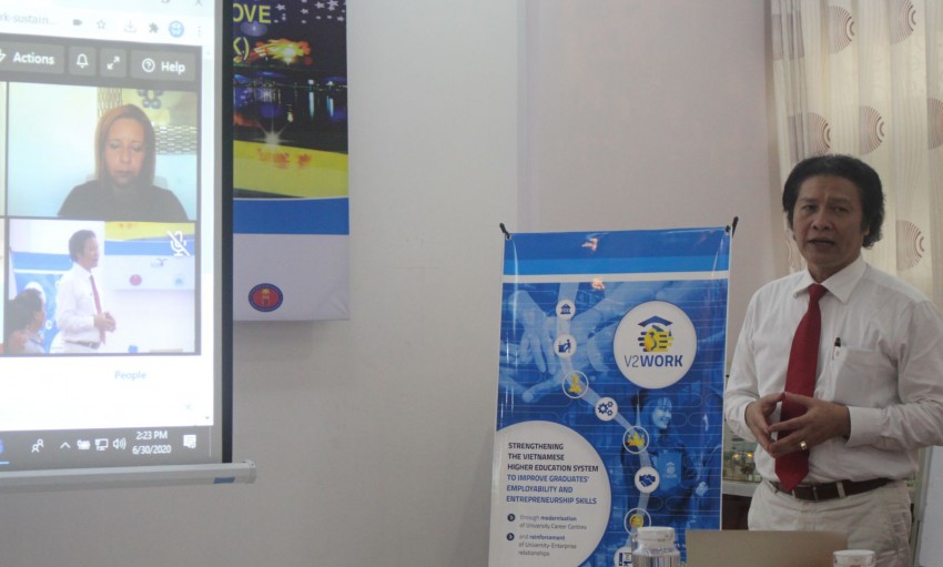 Hội thảo có sự tham gia của đại diện Vụ Công tác Sinh viên, Bộ Giáo dục và Đào tạo, đại diện lãnh đạo: 08 trường ĐH Việt Nam tham gia dự án, Phòng Thương mại và Công nghiệp Việt Nam (VCCI) và Tổ chức Sinh viên quốc tế (AIESEC). Hội thảo đã diễn ra các phiên trực tuyến với các đối tác phía châu Âu (thông qua nền tảng LIVESTORM) cũng như các phiên thảo luận trực tiếp giữa các đối tác Việt Nam. Mục tiêu của Hội thảo nhằm hướng đến thiết lập một môi trường hợp tác, hỗ trợ giữa các thành viên trong mạng lưới V2WORK, nâng cao hiệu quả phối hợp tạo cơ hội việc làm và khởi nghiệp cho sinh viên sau khi tốt nghiệp.
