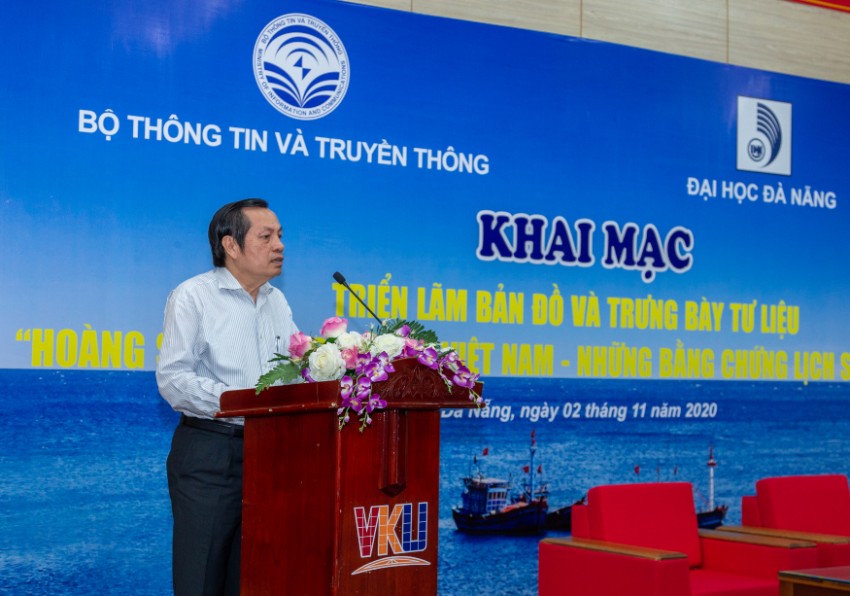 Phó Giám đốc ĐHĐN đánh giá cao Bộ TT&TT và Ban Tổ chức đã tin tưởng, chọn VKU trực thuộc ĐHĐN là địa điểm đăng cai tổ chức Triển lãm ý nghĩa lần này, đồng thời mong muốn các trường ĐH thành viên, đơn vị thuộc và trực thuộc phổ biến, tạo điều kiện giới thiệu để đông đảo cán bộ, giảng viên và sinh viên ĐHĐN cũng như các tổ chức, cơ quan, trường học trên địa bàn thành phố có dịp được tham quan Triển lãm, qua đó thể hiện tinh thần đoàn kết, ý thức trách nhiệm chung tay bảo vệ chủ quyền biển đảo của Tổ quốc.