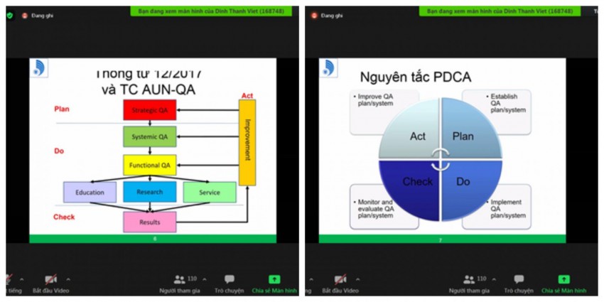 Sau phần khai mạc và báo cáo chuyên đề của PGS.TS. Đinh Thành Việt-Trưởng ban Ban ĐBCL giáo dục ĐHĐN, các cán bộ, học viên tham dự đã tham gia tích cực thảo luận, trao đổi, chia sẻ kinh nghiệm và giải pháp phù hợp với thực tế của từng đơn vị. Với phương thức triển khai tập huấn, giải đáp thắc mắc kịp thời, sinh động, các học viên đã được làm việc hiệu quả, tích cực trong điều kiện tương tác trực tuyến, qua đó thu hoạch nhiều kiến thức, kỹ năng bổ ích về các nội dung liên quan nhằm cùng nhau xây dựng, hoàn thiện hệ thống ĐBCL bên trong đồng bộ, xuyên suốt từ ĐHĐN đến các đơn vị thành viên, trực thuộc, lan tỏa đến mỗi ban, phòng, khoa, bộ môn và cán bộ, giảng viên, người học cũng như các bên liên quan.