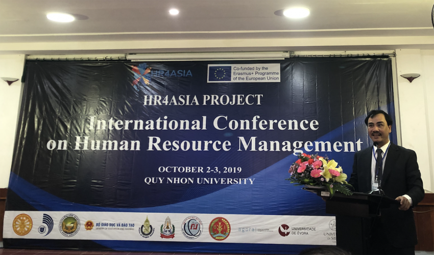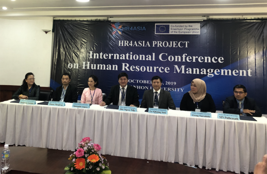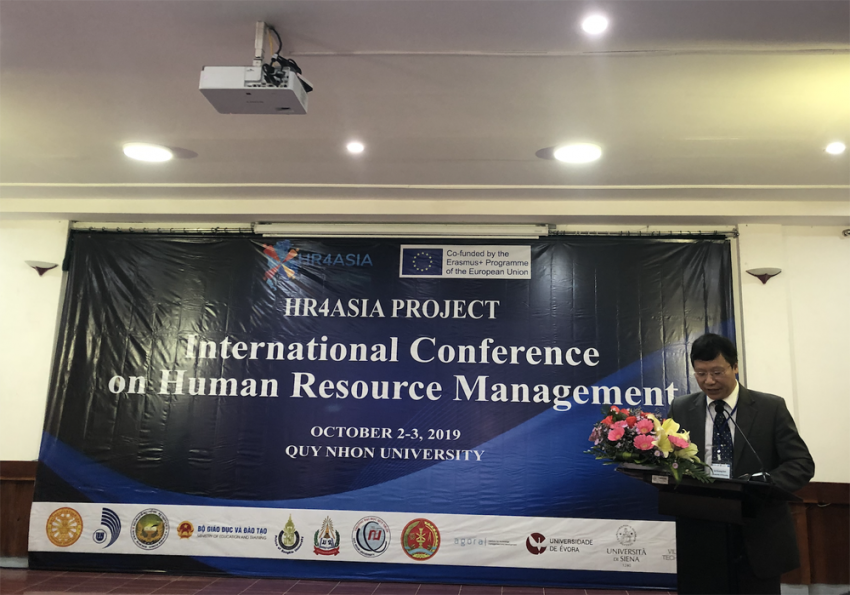 Thay mặt đơn vị đăng cai tổ chức, PGS.TS. Đỗ Ngọc Mỹ - Hiệu trưởng Trường ĐH Quy Nhơn đã phát biểu chào mừng, cám ơn các đại biểu đã dành thời gian để tham gia Hội thảo, cảm ơn ĐH Đà Nẵng đã mời ĐH Quy Nhơn tham gia Dự án HR4ASIA và chọn ĐH Quy Nhơn là địa điểm tổ chức Hội thảo và Lễ ký kết giữa các thành viên sáng lập Mạng lưới Quản trị nguồn nhân lực của các ĐH Đông Nam Á. Dự án đã tạo điều kiện cho Trường ĐH Quy Nhơn cử hàng chục cán bộ tham gia các khoá tập huấn, tham quan các mô hình tiến tiến về quản trị nguồn nhân lực tại châu Âu và các nước khác trong khu vực. Thông qua Dự án, Trường ĐH Quy Nhơn đã từng bước xây dựng và hoàn thiện Chiến lược Phát triển nguồn nhân lực đến năm 2025 và tầm nhìn đến 2035. Trường đã xây dựng Kế hoạch hành động (Action Plan) cho từng năm và áp dụng một số mô hình quản trị nhân lực tiên tiến của các ĐH châu Âu để nâng cao chất lượng nguồn nhân lực, đào tạo và nghiên cứu khoa học.