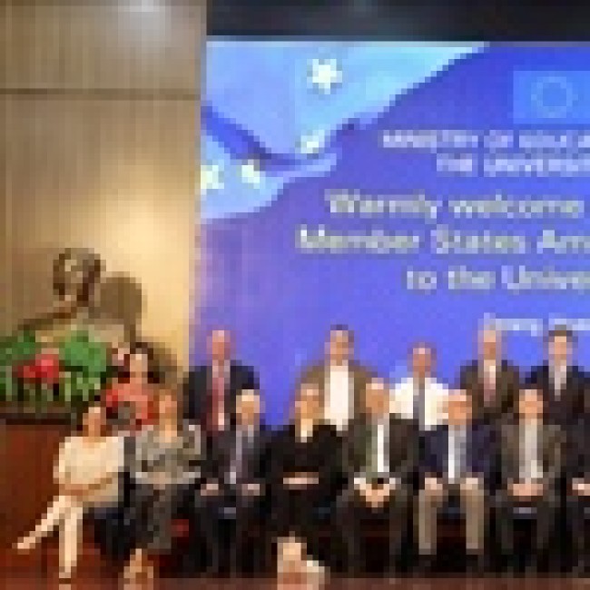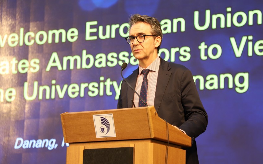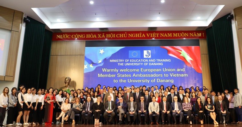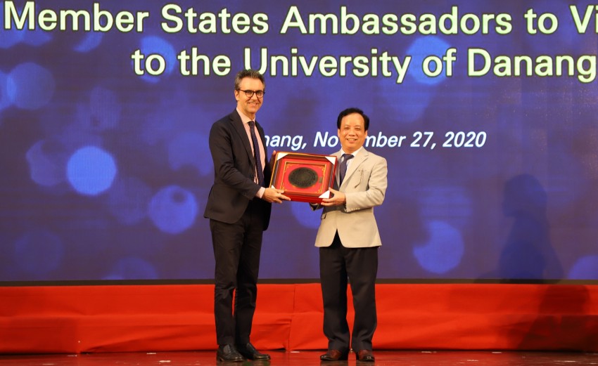 Phát biểu với lãnh đạo và SV ĐHĐN, Ngài Giorgio Aliberti-Đại sứ EU đã nhấn mạnh truyền thống hợp tác giữa Việt Nam và EU trong suốt 30 năm qua cũng như nhiều quốc gia thành viên có bề dày quan hệ hợp tác với Việt Nam từ trước đó.