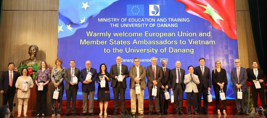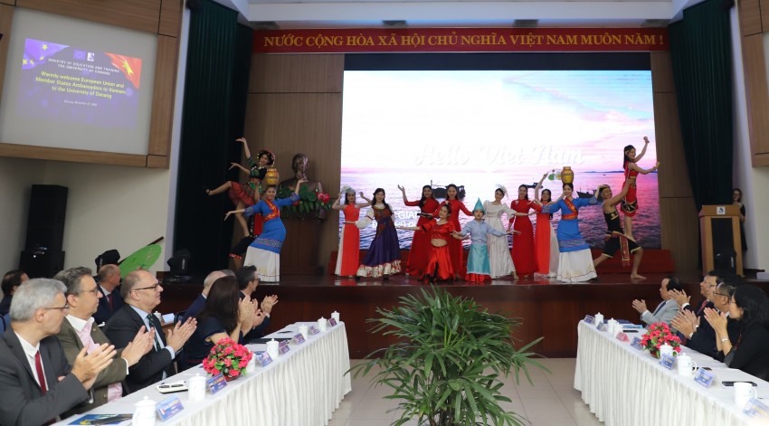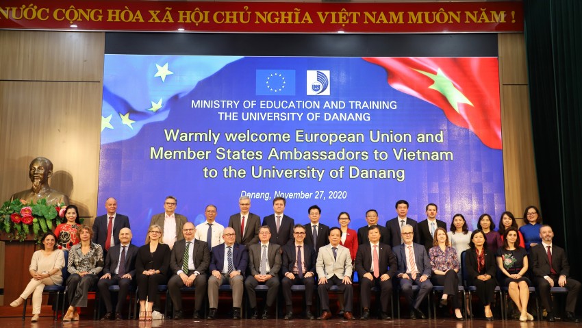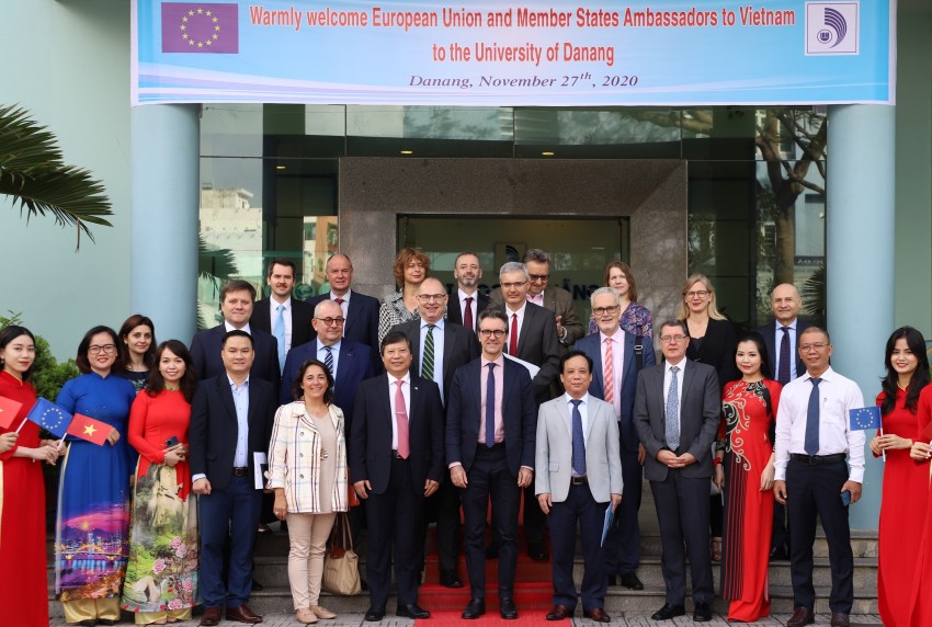 Chuyến thăm diễn ra đúng vào dịp kỷ niệm 30 năm thiết lập quan hệ ngoại giao giữa Việt Nam và Liên minh Châu Âu (EU). PGS.TS. Nguyễn Ngọc Vũ-Giám đốc ĐHĐN đã chủ trì buổi đón tiếp.