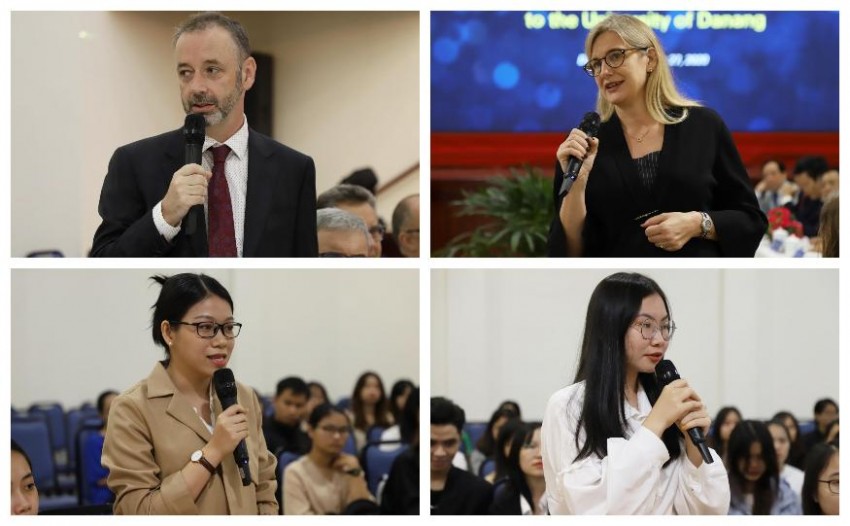 Trong không khí cởi mở và chân thành, các Đại sứ và thành viên của Phái đoàn EU đã dành cho SV ĐHĐN cơ hội quý báu cùng trao đổi, chia sẻ những vấn đề thiết thực đối với các bạn SV như: Cơ hội học tập, học bổng, du học hay làm việc cho các doanh nghiệp, đối tác Châu Âu trong tương lai...