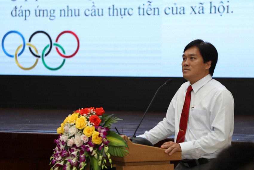 Giám đốc TT Thể thao-ĐHĐN báo cáo đề dẫn