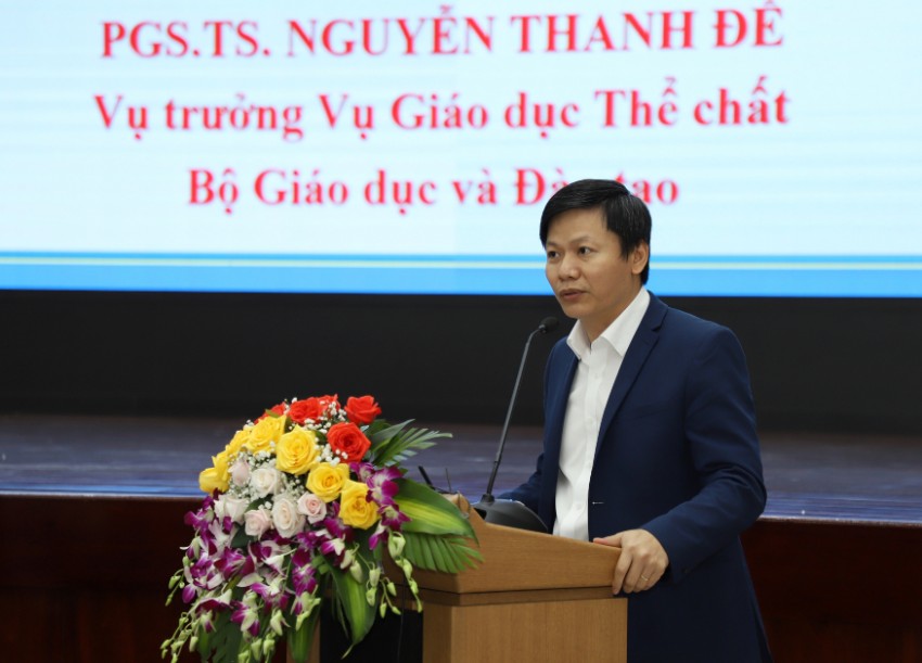 Phát biểu tại Hội thảo, PGS.TS. Nguyễn Thanh Đề-Vụ trưởng Vụ GDTC-Bộ GD&ĐT đánh giá cao ý nghĩa của Hội thảo và trân trọng cám ơn lãnh đạo ĐHĐN đã quan tâm tổ chức Hội thảo khoa học mang tầm vóc Quốc gia, chào mừng các nhà khoa học, chuyên gia về GDTC và hoạt động thể thao trong Nhà trường đã tham dự Hội thảo lần này.