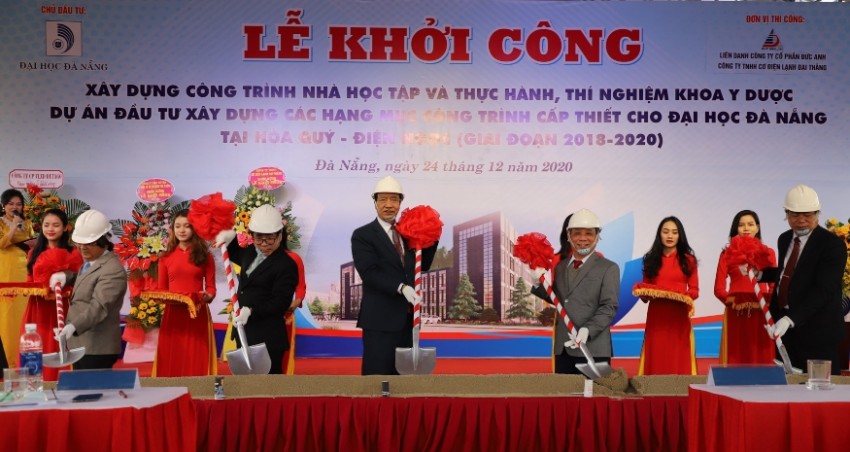 Phát biểu tại buổi Lễ, PGS.TS. Nguyễn Ngọc Vũ-Thành ủy viên, Giám đốc ĐHĐN đã bày tỏ niềm vui mừng và trân trọng cám ơn các cấp lãnh đạo Trung ương và các địa phương đã quan tâm, chỉ đạo, hỗ trợ để ĐHĐN có được sự kiện khởi công xây dựng Công trình Nhà học, thực hành và thí nghiệm cho Khoa Y Dược tại Khu đô thị ĐHĐN.