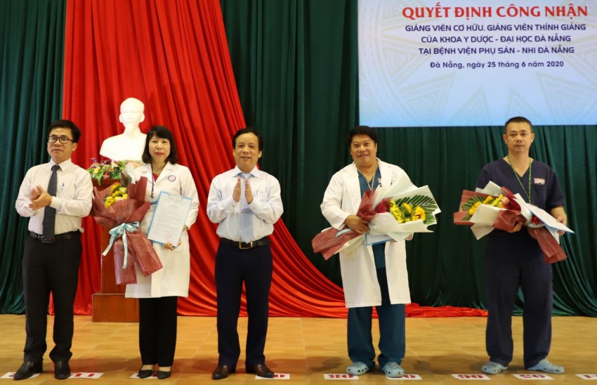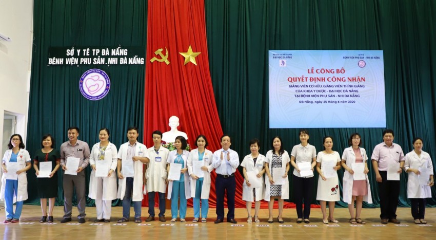 Tại buổi Lễ, PGS.TS. Nguyễn Ngọc Vũ-Thành uỷ viên, Giám đốc ĐHĐN đã trao các Quyết định công nhận chức danh giảng viên cơ hữu/thỉnh giảng cho 85 bác sĩ, cán bộ điều dưỡng đang công tác tại BVPSNĐN, trong đó có 04 giảng viên cơ hữu và 81 giảng viên thỉnh giảng để tham gia công tác giảng dạy, chuyên môn tại Khoa Y Dược-ĐHĐN.