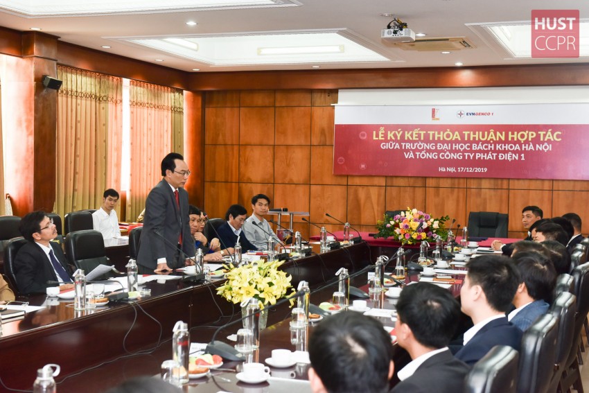 Phát biểu tại buổi lễ, PGS.TS Hoàng Minh Sơn trân trọng gửi lời chúc mừng tới cán bộ, công nhân viên Tổng công ty Phát điện 1 nhân dịp kỉ niệm 65 năm truyền thống ngành Điện. Hiệu trưởng Trường ĐH Bách khoa Hà Nội hy vọng thỏa thuận hợp tác sẽ tạo cơ hội cho sinh viên hoạt động thực tiễn nhiều hơn, vững vàng hơn về kiến thức; Cùng đó, giải bài toán về kĩ thuật cho Tổng công ty Phát điện 1, đóng góp cho khoa học và nâng cao vị thế Nhà trường trong lĩnh vực nghiên cứu.