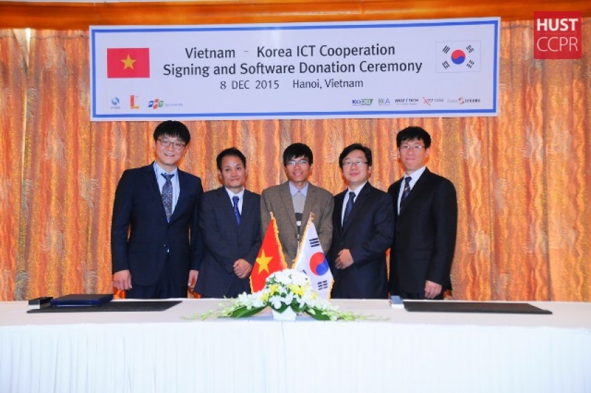 Trong khuôn khổ chương trình mở rộng phát triển dữ liệu Hàn Quốc với toàn cầu, Cơ quan Cơ sở Dữ liệu Hàn Quốc (KoDB) đã tổ chức lễ ký kết và trao tặng các phần mềm cơ sở dự liệu cho một số đơn vị tại Việt Nam với đơn vị thực hiện là Hiệp hội ngành CSDL Hàn Quốc (DIA). Tham gia lễ ký kết có sự hiện diện của PGS Ngô Hồng Sơn - Viện trưởng Viện CNTT&TT và TS Vũ Tuyết Trinh - Phó trưởng phòng Hợp tác Quốc tế, Trường ĐHBK Hà Nội; đại diện Bộ Khoa học, ICT và Kế hoạch tương lai, Hàn Quốc và Ông Junghyun Lee, đại diện DIA.