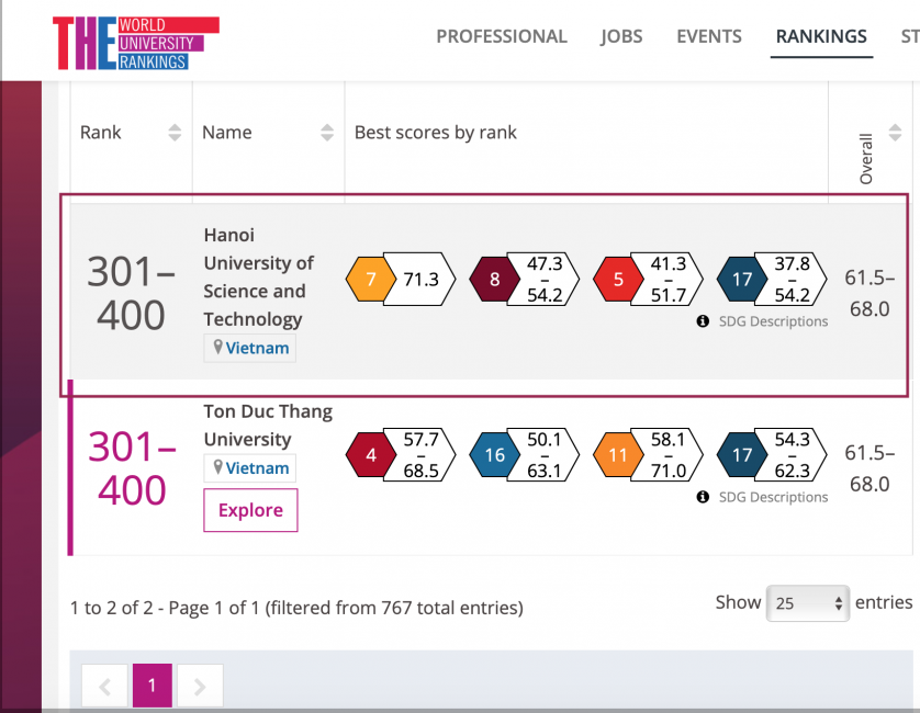 Đại học Bách khoa Hà Nội là một trong hai trường đại học ở Việt Nam xuất hiện trong Bảng xếp hạng này