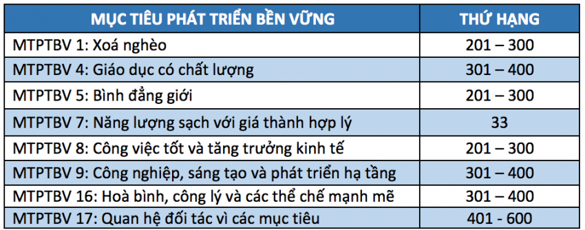 Nhận ra vai trò của mình đối với cộng đồng, ĐHBK Hà Nội luôn theo sát các MTPTBV để thực hiện một trong những sứ mạng cao cả nhất của Trường, chính là phục vụ xã hội và đất nước. Mặc dù đây là lần đầu tham gia bảng xếp hạng, ảnh hưởng của ĐHBK Hà Nội đối với MTPTBV ‘Năng lượng sạch với giá thành hợp lý’ được đánh giá cao, xếp thứ 33 trong số 361 nước tham gia, đồng thời Trường cũng được công nhận trong nhiều lĩnh vực khác: