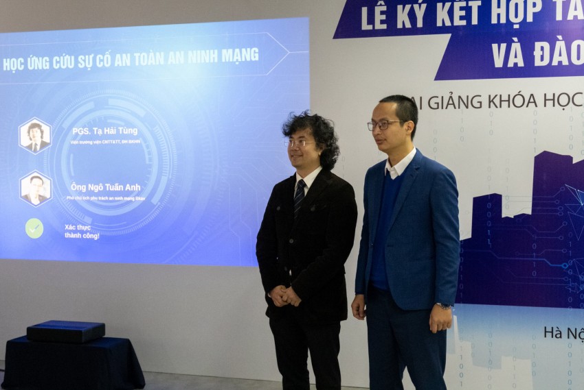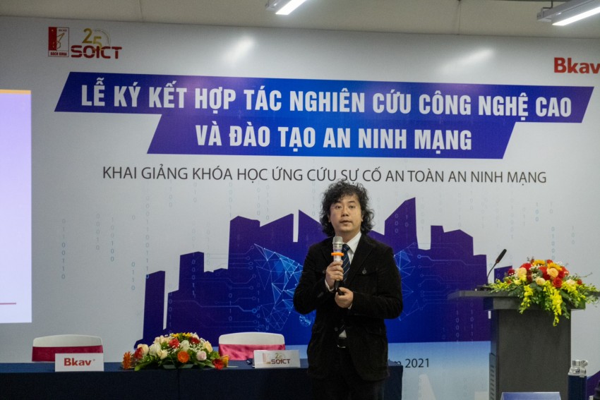 Về mảng đào tạo an ninh mạng, SoICT và Bkav sẽ hợp tác xây dựng chương trình đào tạo kỹ sư chất lượng cao về an toàn không gian số, định hướng đào tạo chuyên gia với chuyên môn chuyên sâu. Tham gia chương trình, sinh viên sẽ được học lý thuyết và thực hành với các giảng viên và chuyên gia giỏi nhất trong lĩnh vực, được thực hành trên các hệ thống diễn tập tiên tiến của Bkav, cũng như trải nghiệm thực tế trong các kỳ thực tập tại các đơn vị cung cấp dịch vụ phòng chống tấn công và đảm bảo an ninh mạng trong và ngoài nước.