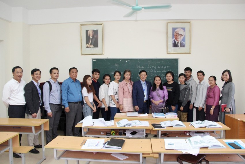 Buổi gặp gỡ và làm việc trong không khí cởi mở, thân thiện giữa đoàn công tác và Nhà trường; cuối buổi gặp gỡ, đoàn công tác đã đi tham quan Nhà trường và ký túc xá của lưu học sinh Lào để nắm bắt thêm tình hình sinh hoạt của các em học sinh.