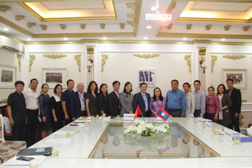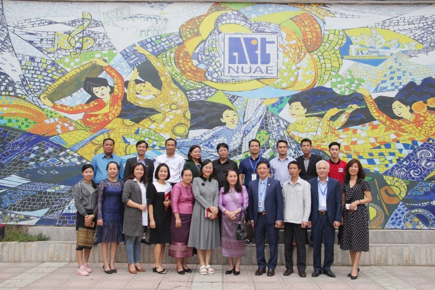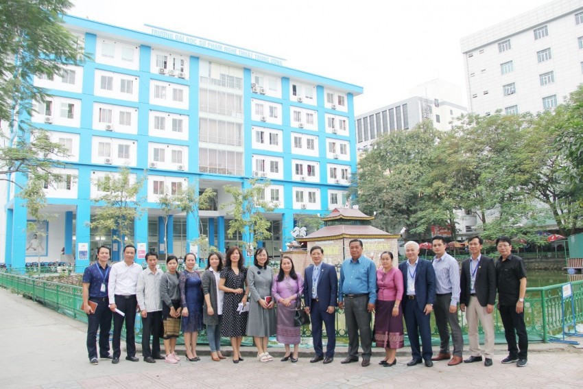Đoàn công tác của Cục Công tác sinh viên, Bộ Giáo dục và Thể thao Lào chụp ảnh lưu niệm với lãnh đạo Nhà trường