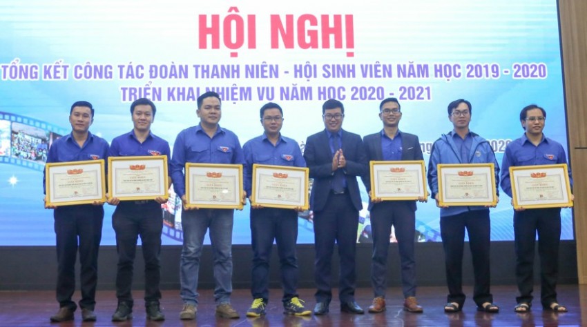 Hội nghị đã khen thưởng các tập thể và cá nhân có thành tích xuất sắc, tiêu biểu trong công tác Đoàn-Hội SV năm học 2019-2020: