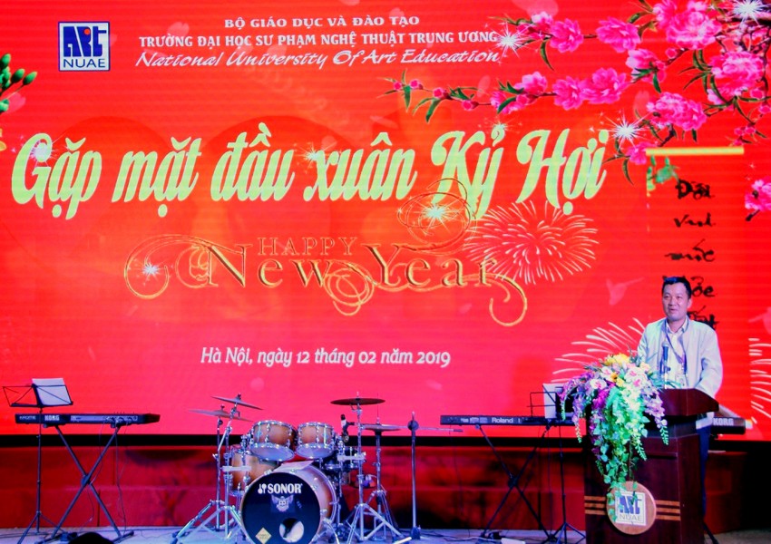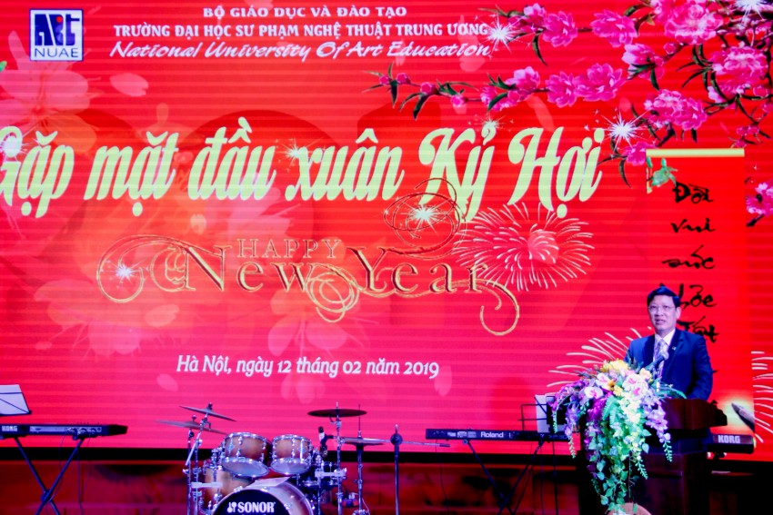 Sau chương trình nghệ thuật do giảng viên, sinh viên Nhà trường biểu diễn, PGS.TS. Đào Đăng Phượng - Bí thư Đảng ủy, Hiệu trưởng Nhà trường phát biểu và gửi những lời chúc tốt đẹp nhất đến toàn thể cán bộ, giảng viên, học viên, sinh viên nhân dịp năm mới. Đồng thời, PGS.TS. Đào Đăng Phượng cũng bày tỏ hy vọng trong năm 2019, tập thể cán bộ, giảng viên Nhà trường sẽ tiếp tục đoàn kết, phấn đấu và quyết tâm hơn nữa để hoàn thành xuất sắc những kế hoạch đã đề ra, góp phần vào sự phát triển chung của Trường Đại học Sư phạm Nghệ thuật Trung ương.