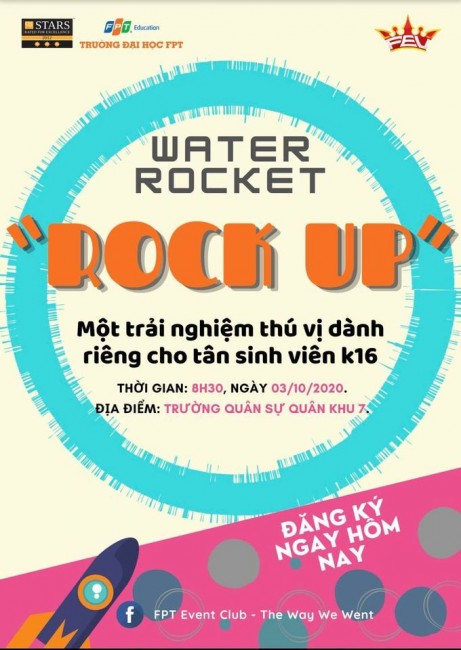 Water Rocket là cuộc thi làm tên lửa nước nhằm tạo sân chơi lành mạnh, bổ ích cho các bạn sinh viên khóa mới có niềm đam mê với khoa học, sáng tạo. Với chủ đề “ROCK UP”. Water Rocket hứa hẹn sẽ mang đến một làn gió mới với nhiều điều hấp dẫn, thú vị dành cho các tân binh, mang đến 1 làn nước tươi mát xoa dịu cái nóng oi bức của Sài Gòn.