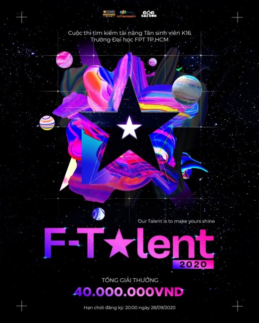 F-Talent 2020 là cuộc thi tìm kiếm những tài năng, kết nối những nhân tố đặc biệt đến từ hàng nghìn Tân sinh viên K16 Đại học FPT TP.HCM. Với slogan “Our Talent is to make yours shine”, F-Talent 2020 mong muốn trở thành “bệ phóng” tài năng, hỗ trợ các bạn trẻ những bước đi đầu tiên trên con đường theo đuổi, thể hiện tài năng của bản thân và có được cơ hội tỏa sáng cùng các sinh viên tài năng khác.