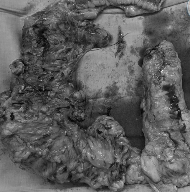 Bệnh nhân được mổ nội soi và ghi nhận trong mổ đây là một trường hợp lồng ruột đại-đại tràng do u đại tràng ngang gần gốc gan và thám sát thấy đại tràng góc lách cũng có một khối sượng cứng nghi ngờ u.
